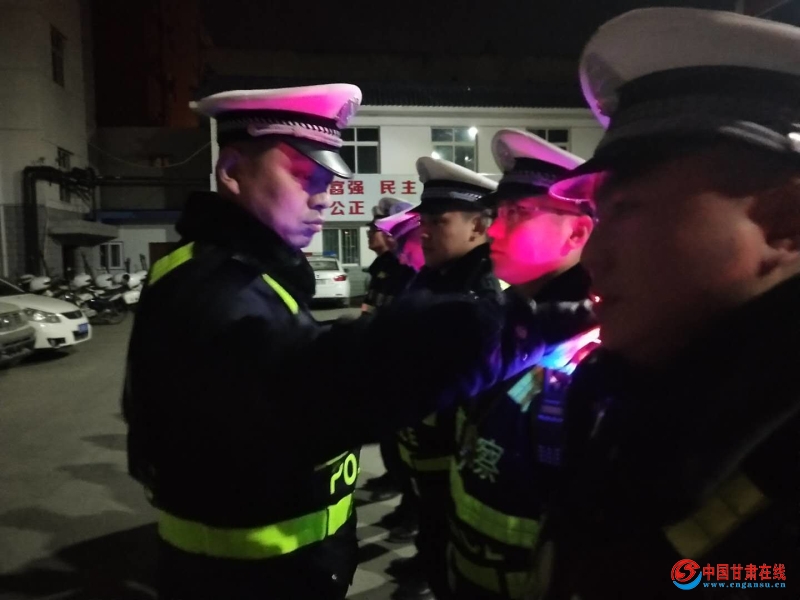 2019年1月14日20时,麦积交警城区二中队指导员张亮亮组织全体民警在大队院内点名集合,随后中队长霍军军对行动的具体事项进行了详细的安排部署,并检查民警警容警姿。
