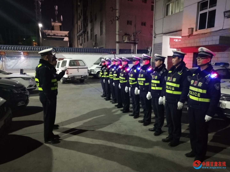 2019年1月14日20时,麦积交警城区二中队指导员张亮亮组织全体民警在大队院内点名集合,随后中队长霍军军对行动的具体事项进行了详细的安排部署,并检查民警警容警姿。
