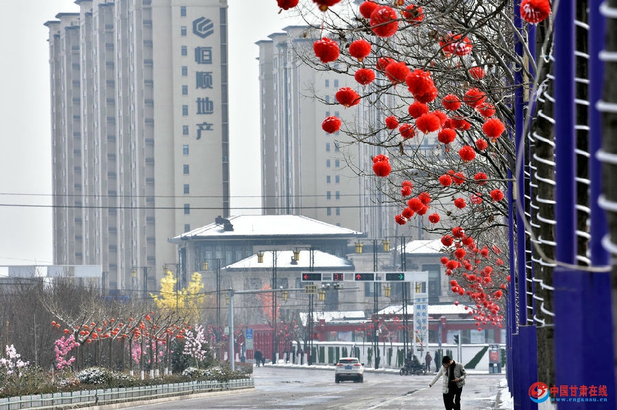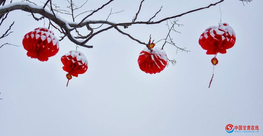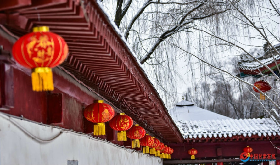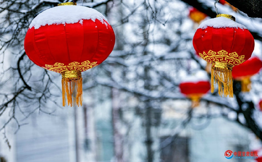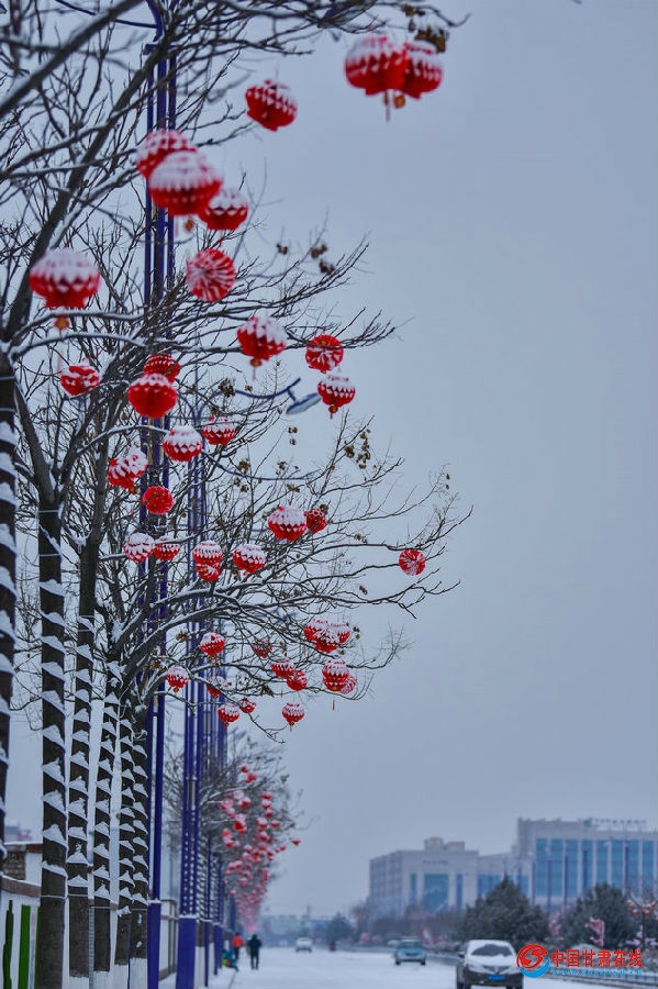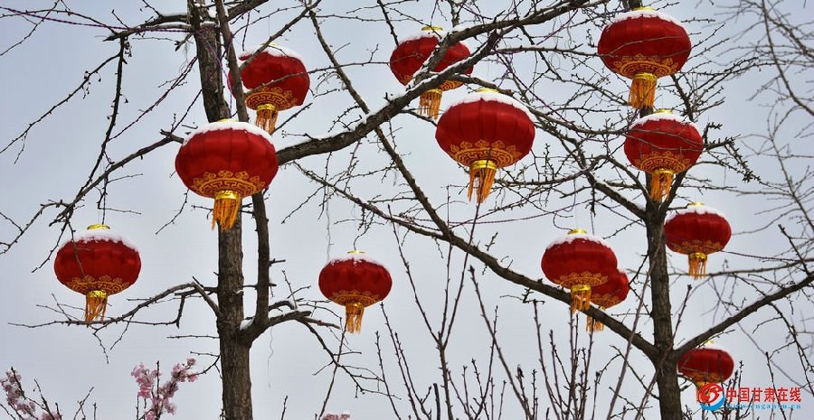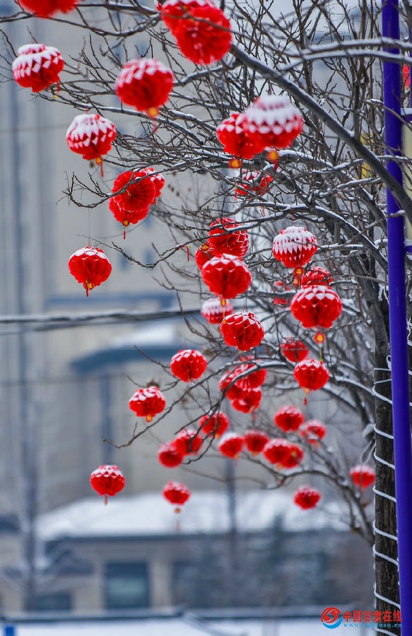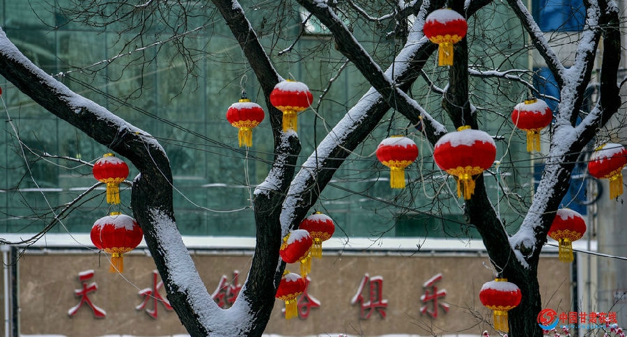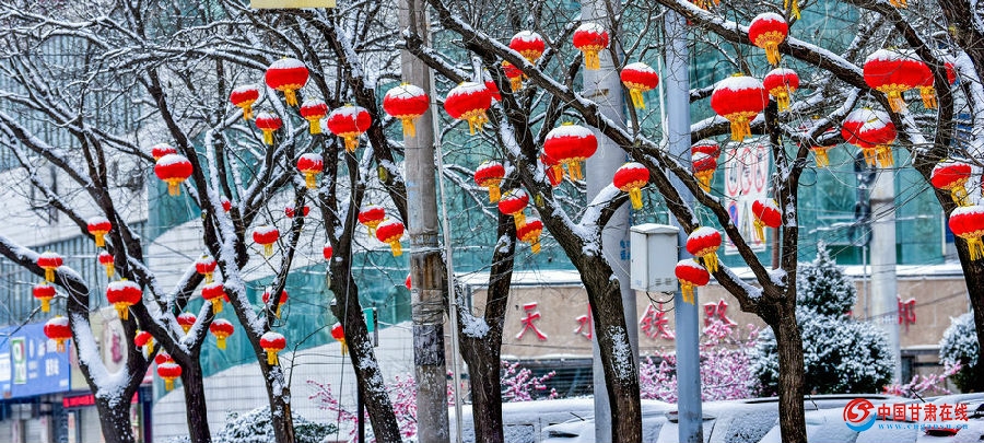 正月初六,麦积城区的红灯笼遇到瑞雪,简直美爆了