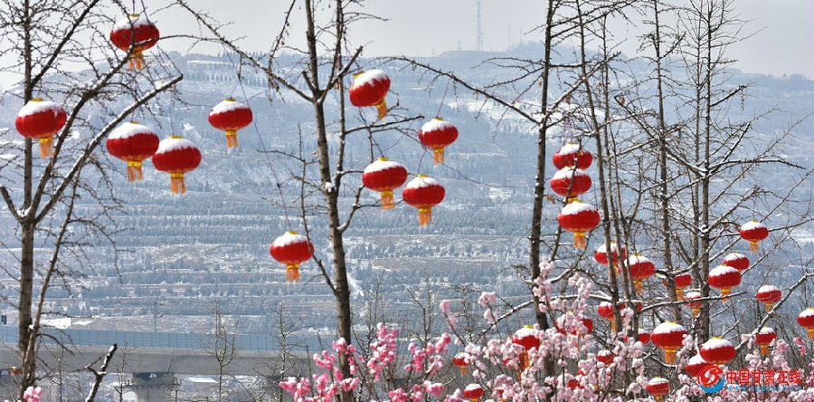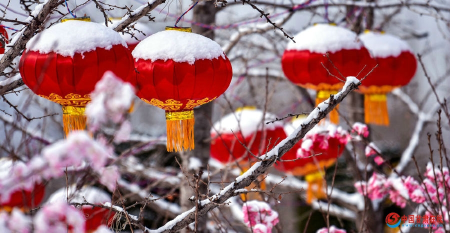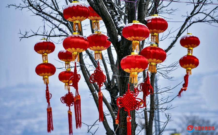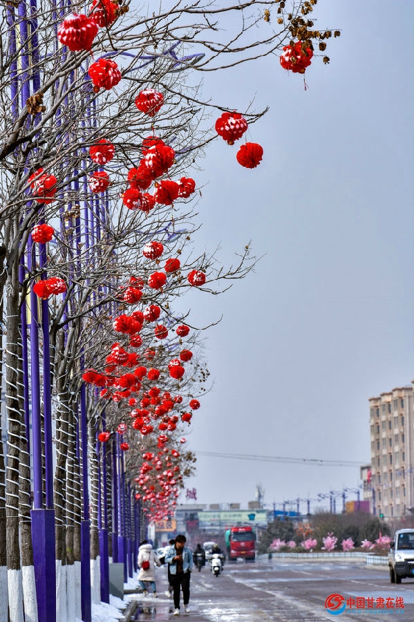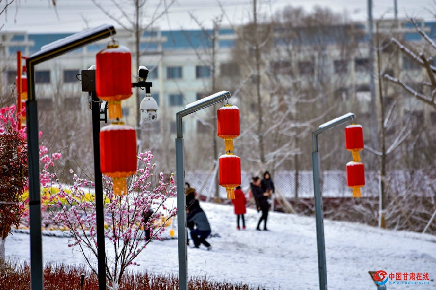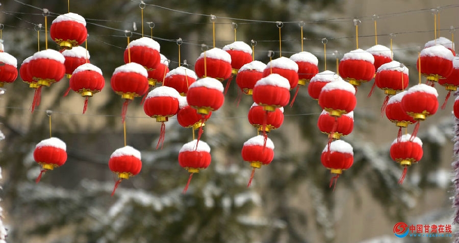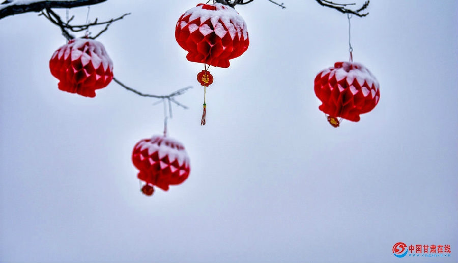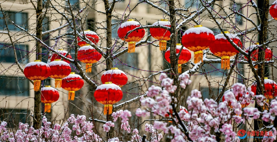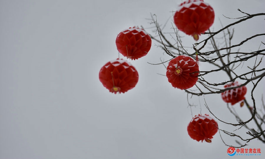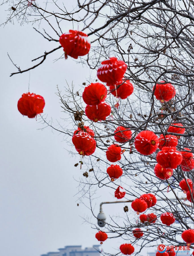 正月初六,麦积城区的红灯笼遇到瑞雪,简直美爆了