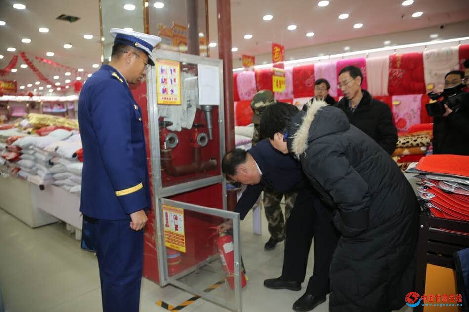 为进一步加强消防安全工作,严格落实各项安全防范责任和措施,坚决遏制重特大火灾事故特别是群死群伤恶性火灾事故的发生,为辖区营造稳定的消防安全环境。近日,清水县委常委、政法委书记秦永斌,副县长、县公安局长李宝玲带领县安监局、消防队、公安局、执法局、住建局等相关部门负责人在城区开展了消防安全检查。