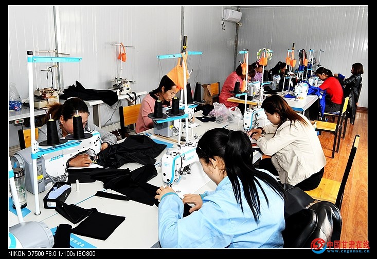 5月13日,天水市麦积区石佛镇石佛村村民正在“扶贫车间”内加工服装。去年,该镇在推进精准扶贫过程中建立了“扶贫车间”,通过对工人进行岗前安全教育、缝纫技术培训持证上岗,有效解决了40多名建档立卡贫困妇女、陪读妈妈在家门口就业增收,人均年收入达3万元以上。(通讯员 窦耀辉)