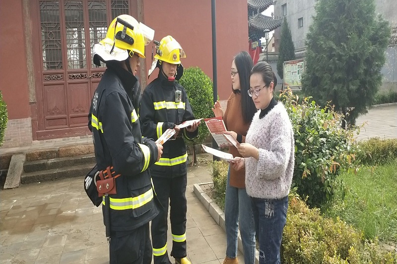 活动中,大队宣传人员结合文物古建筑场所内明火多、可燃物多等特点,向场所管理人员和前来游客阐明做好消防工作的重要性,同时要求管理人员提高责任意识,严格落实每日防火巡查。提醒场所负责人注意防范用电、香烛、爆竹、明火等引发的火灾,并向他们详细讲解了灭火器的使用及维护保养方法,手把手指导在场工作人员使用灭火器。随后,宣传人员将精心准备的宣传彩页发放给游客和场所工作人员,并提醒工作人员在场所内进行张贴并向游客发放。