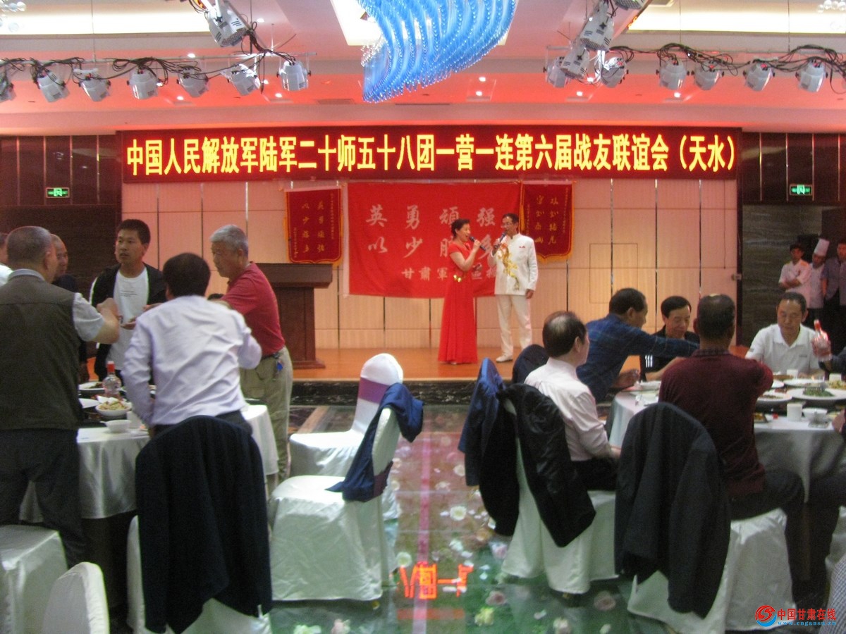 5月23日晚,中国人民解放军原陆军二十师五十八团一营一连第六届老战友联谊会100多人在天水市麦积区万达酒店举行。来自全国各省、市的老战友在“羲皇故里”天水隆重相逢,欢聚一堂。