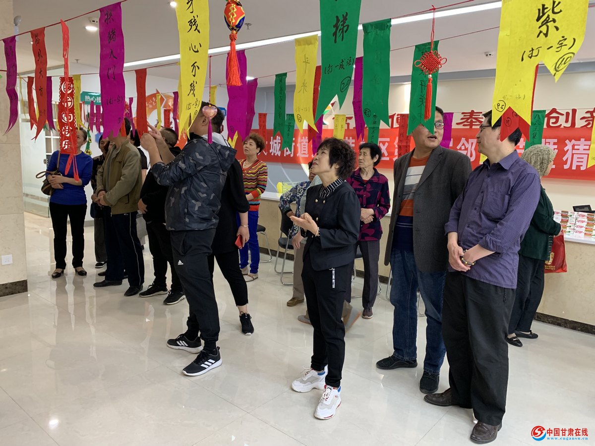 社区工作人员准备了近百条关于端午节来历、故事的谜语,由离退休党员书法爱好者一一誊写在彩纸上,悬挂在社区服务大厅中,姹紫嫣红的场面立刻引起居民们极大地兴趣,所有人都精神饱满、劲头十足,有的对一个谜语冥思苦想,有的几人围在一起讨论,猜到的兴高采烈去领奖,没猜到的皱眉苦苦思索,党员刘大爷诙谐的说:“往年邻里节是包粽子做荷包,今年的可是斗智商,真是其乐无穷啊!”,一席话引得大家哈哈大笑,猜谜现场气氛热烈,欢声笑语不断。