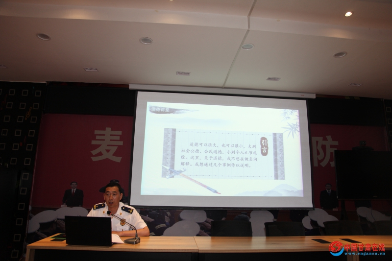 此次道德讲堂主要围绕“学模范、诵经典、谈感受、听歌曲”四个环节,让全体指战员感悟道德精神,传递道德力量。道德讲堂通过谈感受让大家时刻铭记自己的初心和使命,踏实践行对党忠诚、纪律严明、赴汤蹈火、竭诚为民的神圣职责。随后观看了短片,让指战员从思想和灵魂上接受了一次勤奋敬业、甘于奉献的精神洗礼。学模范环节,大家一起聆听了大家共同学习了“全国优秀党务工作者”刘田家、王昌君的先进事迹,充分感受到了模范就在你我身边,在平凡的岗位上,在平凡的面容后。诵经典环节,学习诵读了《论语》关于“克己复礼、子张问政”的经典语录,从先贤的伟大哲思中启悟人生,感受道德的力量,在感悟经典的同时,指战员们内省自我,将道德的印记留在心中,不断转化为工作和生活前行的动力。