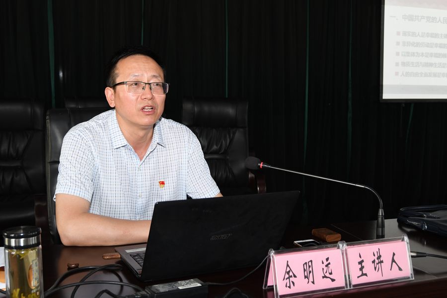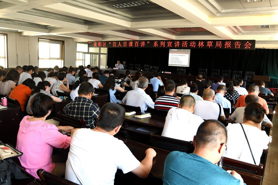 为全面学习贯彻习近平新时代中国特色社会主义思想和党的十九大精神,8月7日,麦积区林业和草原局举办“百人百课百讲”宣讲报告会,特别邀请天水市委宣讲团成员、天水师范学院教授余明远作《中国共产党的人民幸福观》专题讲座,进一步增强广大党员干部和职工群众“四个意识”,激励广大干部职工自觉践行新思想、建功新时代、为人民谋幸福。
