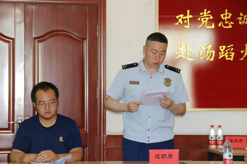 会议上,政治教导员任海洋向社会单位讲述了召开此次述职述廉报告会的意义及目的,并向各行各业代表在百忙之中抽空参加此次述职述廉活动表示感谢。随后,政治教导员任海洋就上半年以来大队在消防工作、消防监督队伍廉政建设进行了简要汇报。紧接着,本着公开、透明的原则,大队执法监督干部分别结合工作、生活实际,围绕日常工作履职、辖区火灾因素的分析评估、改进执法方式,端正执法理念,提升服务水平、自身业务能力提升、工作中遵守廉政规定及自身工作中存在问题及改正措施、下一步工作方向和廉政承诺等方面进行了客观、详实的述职述廉,自觉接受广大群众的监督。大队监督执法干部分别于消防安全重点单位代表现场签订了《消防监督执法廉政承诺书》,大队工作人员现场发放了《消防执法干部公正文明执法、遵守廉政纪律情况民主测评表》和《天水市消防支队执法营商环境评价暨反腐倡廉建设调查问卷》,参会代表对消防监督执法干部在职业道德、工作效率、服务态度、工作作风、廉洁自律等方面进行了综合评价,随后展开现场座谈了解并提出了宝贵的意见和建议。测评结束后,政治教导员任海洋对开展这次述职述廉大会进行了总结,他指出,通过这次向社会公开述职述廉活动,进一步增强消防监督执法干部廉政执法和为民服务观念意识,提高消防监督执法水平,提升消防监督执法工作的透明度,树立消防执法队伍良好的社会形象。