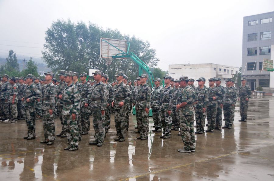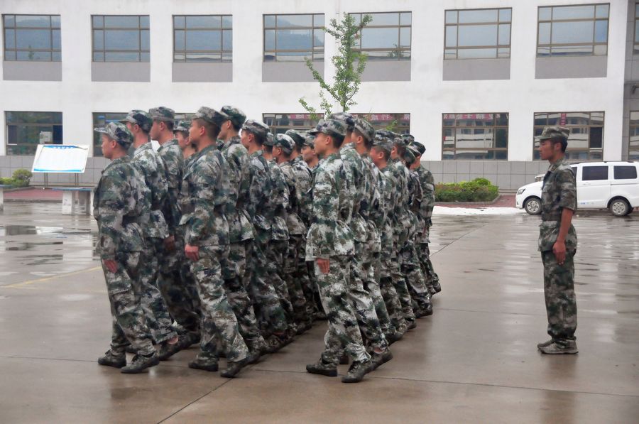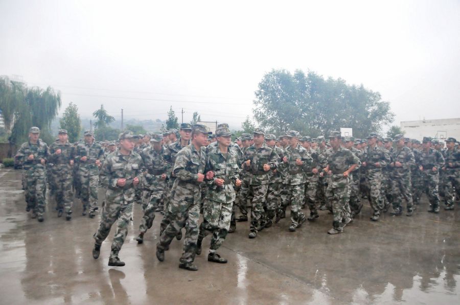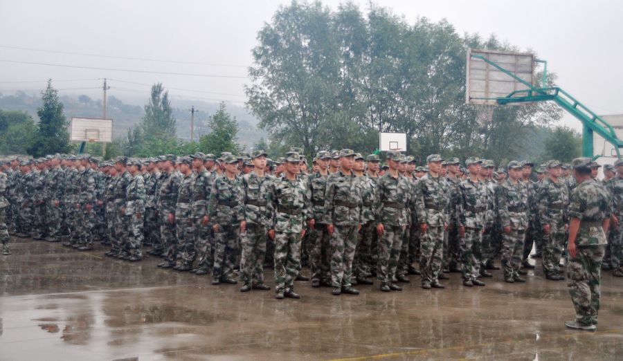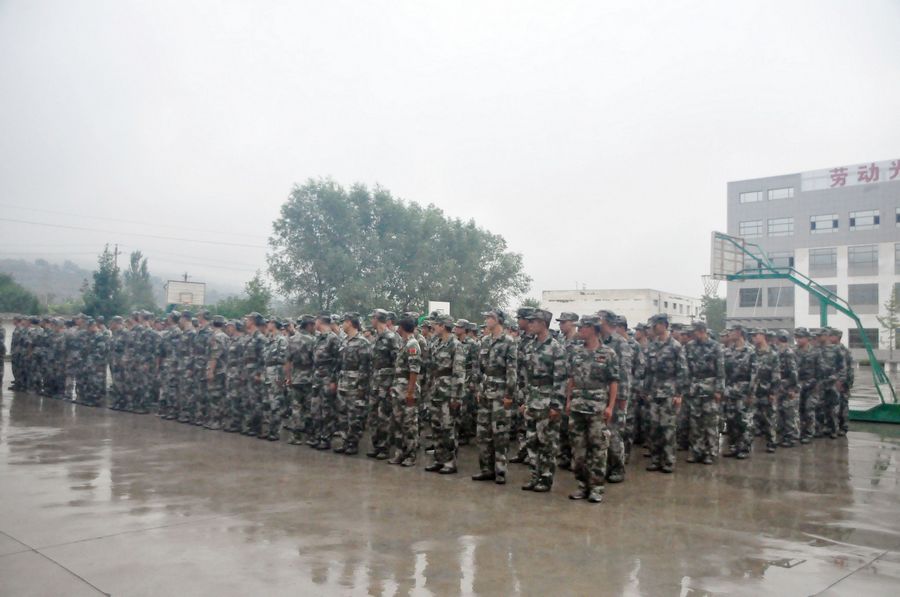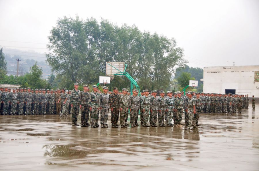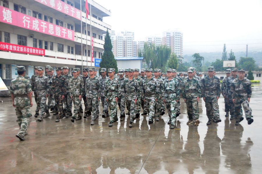 在训练场上,训练新兵冒着大雨,仍然坚持队列训练,齐步、跑步等队列队形整齐有序、军令口号声洪亮,铿锵有力。来自全区17个镇、3个街道办事处已经初定的300余名新兵在这里接受了为期5天的集训,开始他们感受军营“初步体验”生活,为正式参军入伍打下良好的基础。