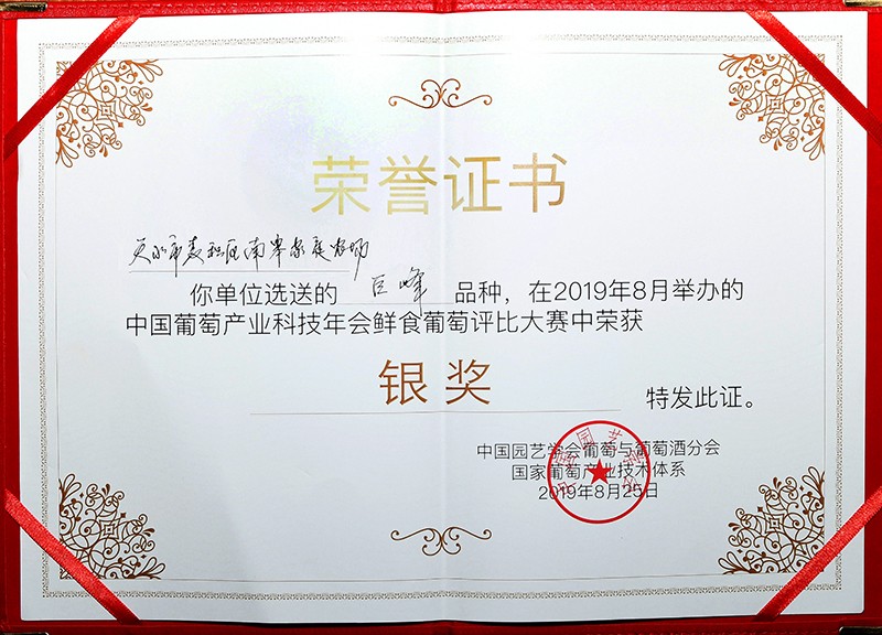 8月30日,记者从天水市麦积区果业发展中心获悉,由该中心推荐麦积区南皋家庭农场、麦积区绿旺葡萄专业合作社两企业选送的“巨峰”葡萄,在今年8月份参加中国园艺学会葡萄与葡萄酒分会、国家葡萄产业技术体系共同举办的中国葡萄产业科技年会鲜食葡萄评比大赛中分别荣获银奖。