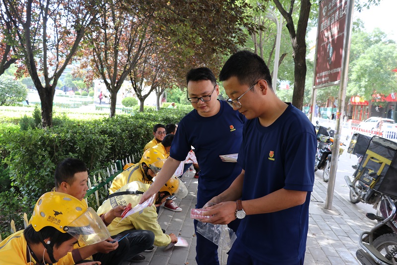 为进一步增强“防风险保平安迎大庆”消防安全,广泛发动全民积极投入消防宣传的积极性,进一步推进消防宣传“全覆盖”,秦安消防救援大队拓展消防宣传队伍,改进宣传模式,延伸宣传触角,携手美团外卖开展消防安全宣传。