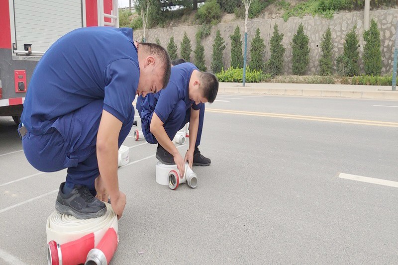 车操开展前,指挥员首先向参训专职队员下达训练项目,提出训练要求,对操法进行了详细的讲解,进一步明确了各队员的任务分工。在班长的带领下,队员们迅速整理器材,认真检查装备,做好充分的准备,随着班长口令发出,队员按照各自分工迅速展开,接接口、抛水带、连接分水器、接水枪、加压、实地出水等一连串的动作一气呵成。两趟下来,汗水早已把队员们的衣服打湿,但这丝毫没有减去他们训练中的激情,参训队员无一人退缩、逃避,充分发扬“不怕苦、不怕累”的精神,严格按照操法训练的操作规程,统一动作、统一标准、统一方法。老队员向新队员传授经验和方法,促进其提高配合默契程度,逐步达到一定的训练效果。