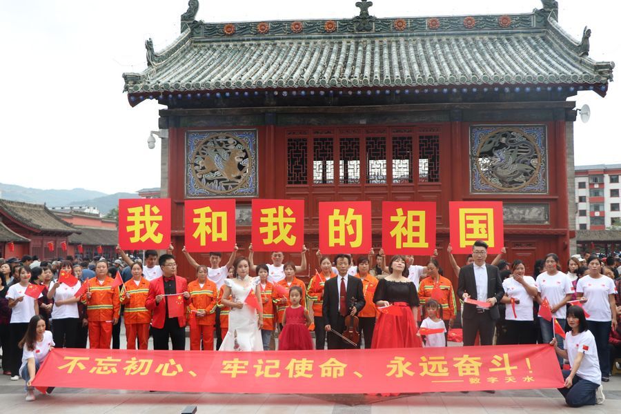 中国甘肃在线天水讯 70年脚步铿锵,70年成就辉煌。为庆祝祖国70周年华诞,数字天水联合秦州区环卫局、天水秦州农村合作银行、甘肃天合实业(集团)有限公司、天水金龙大酒店、天水师范学院文传学院、天水艺校、华宇音乐工作室、天水云视线、甘肃源点印象文化有限公司及社会各阶层团体、群众,开展“我与祖国共奋进”为主题短视频拍摄以及齐唱《歌唱祖国》活动,他们用激情、用歌声尽情诠释了对祖国母亲的热爱和深情祝福。