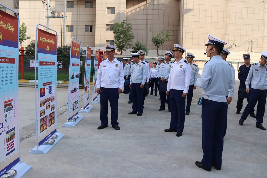 参会人员集中观摩学习了甘谷大队党建工作成效,与会人员在解说员的带领下,参观了甘谷大队党史文化墙、主题文化长廊、党群活动中心、队史馆等特色党建活动阵地以及各基层党组织创建成果展示展板,模拟召开党员大会、党支部会议,观看基层党组织标准化建设示范片,查看了甘谷大队党组织建设工作台账,组织召开了天水支队基层党组织标准化建设推进会。