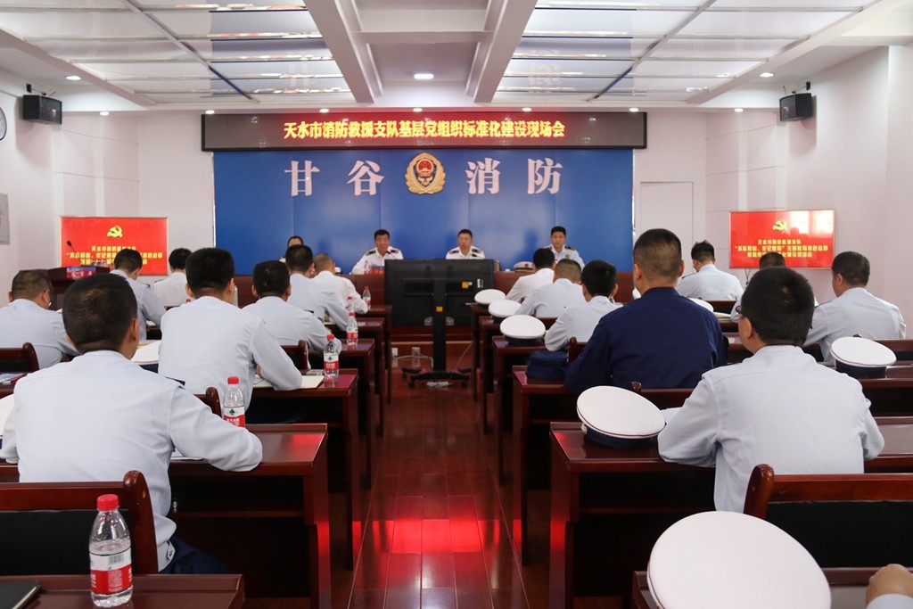 中国甘肃在线天水讯(供稿:天水市消防救援支队)为进一步推动政治工作理念、机制和手段转型升级,加强基层党建工作经验交流,推动基层党组织“星级”达标创建活动深入开展,天水支队于9月25日,在试点单位甘谷大队召开了基层党组织标准化建设现场会。支队党委成员、大、中队主官,各部门、大中队党务工作者参加了会议,代支队长牛小强主持会议。