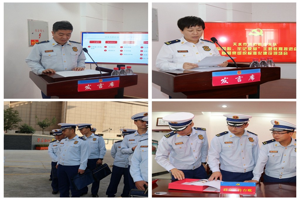会上,甘谷大队作了题为《亮星展旗强堡垒、不忘初心铸忠诚》的经验交流发言。今年以来,甘谷大队以习近平授旗训词精神为指引,立足队伍实际,大力实施党建“1234”工程推动党建工作提标升级。创新“四个三”党建工作新举措,打造“一廊一室一中心”三个活动阵地,自主研发上线了智慧e党建APP,基层党组织战斗堡垒作用显著增强。秦州大队、特勤中队结合本单位“星级”党组织达标创建工作了交流发言,分别汇报了今年以来政治工作取得的成效、存在的问题以及意见建议。