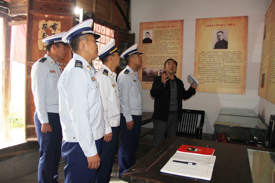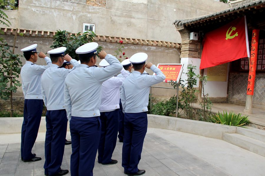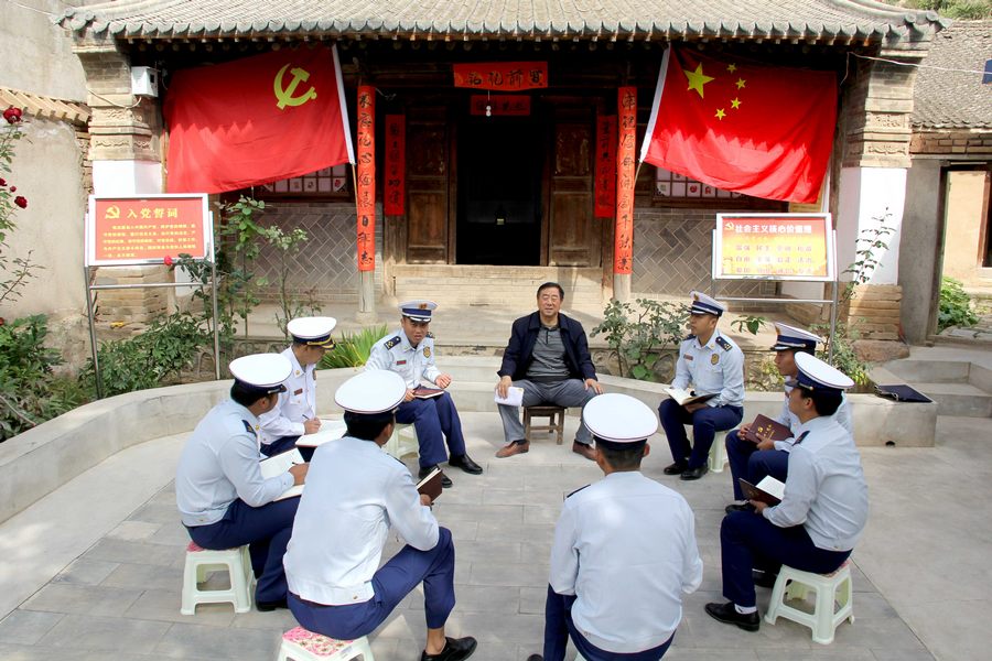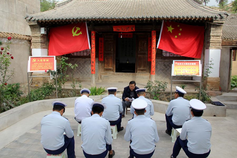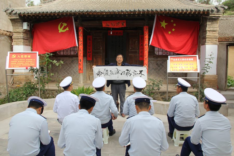 在红色圣地的院落里,全体党员面对鲜艳的党旗,举起右拳,握紧拳头,重温入党誓词,回顾入党初心。活动期间,大队邀请刘孝子老人以直抵人心的方式为大家上了一场党课,讲述战争年代那段艰苦岁月。从“天水兵变”到“攻打甘谷国民党政府大院”;从“鲁班山取抢”到“杨家寺血战”,一个个生动而悲壮的故事浮现眼前。特别是抗战初期,天水籍共产党员柴宗孔、宋世杰、刘尚恭等一批仁人志士抛头颅洒热血,壮烈牺牲的故事让现场聆听的党员们无不热泪盈眶。