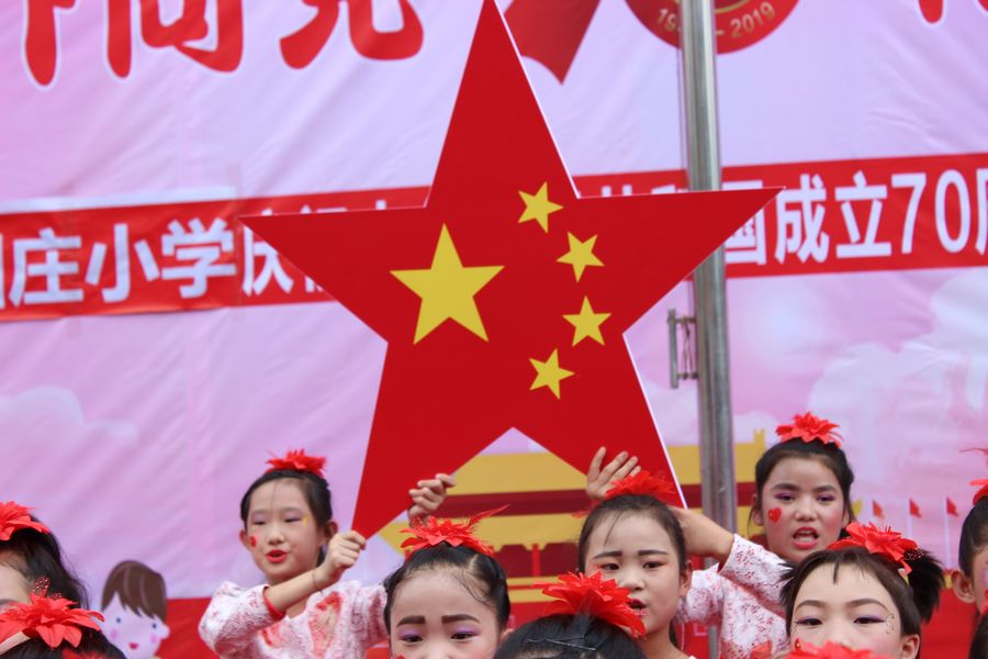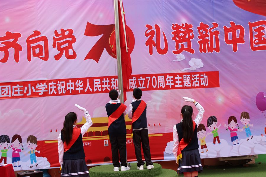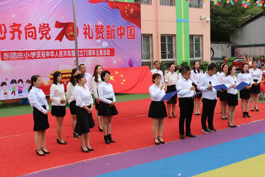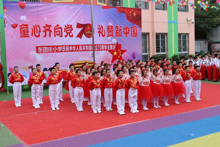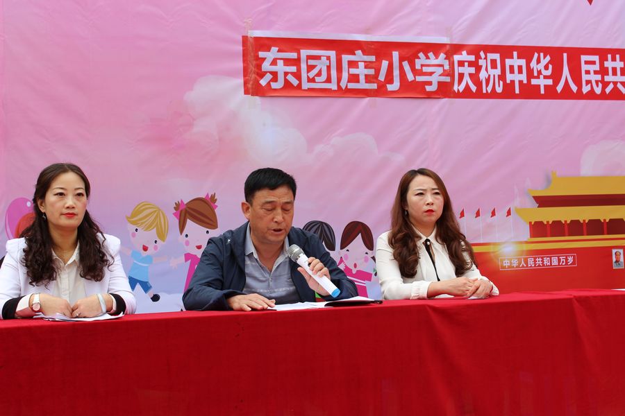 庆祝活动在升国旗仪式中拉开帷幕。东团庄小学马彦春校长致词,他说我们中华民族是一个伟大的民族,爱国主义精神是我们这个民族最美的花朵。他说爱国,是一个神圣的字眼;爱国,更是至高无上的品德。他希望同学们任何时候都要记住这三个词:中国人、中国心、中国梦!