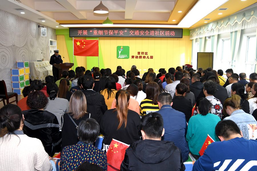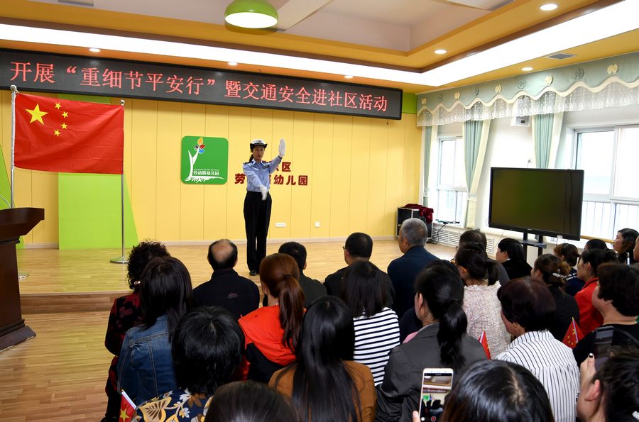 为提高群众交通安全意识,有效预防道路交通事故,10月9日,麦积区道北街道办事处北山路社区特别邀请麦积公安分局交警大队民警,走进劳动路幼儿园开展“大手拉小手、细节保平安”交通安全进社区宣传活动。