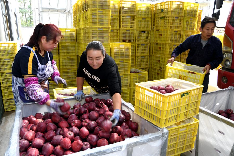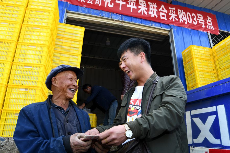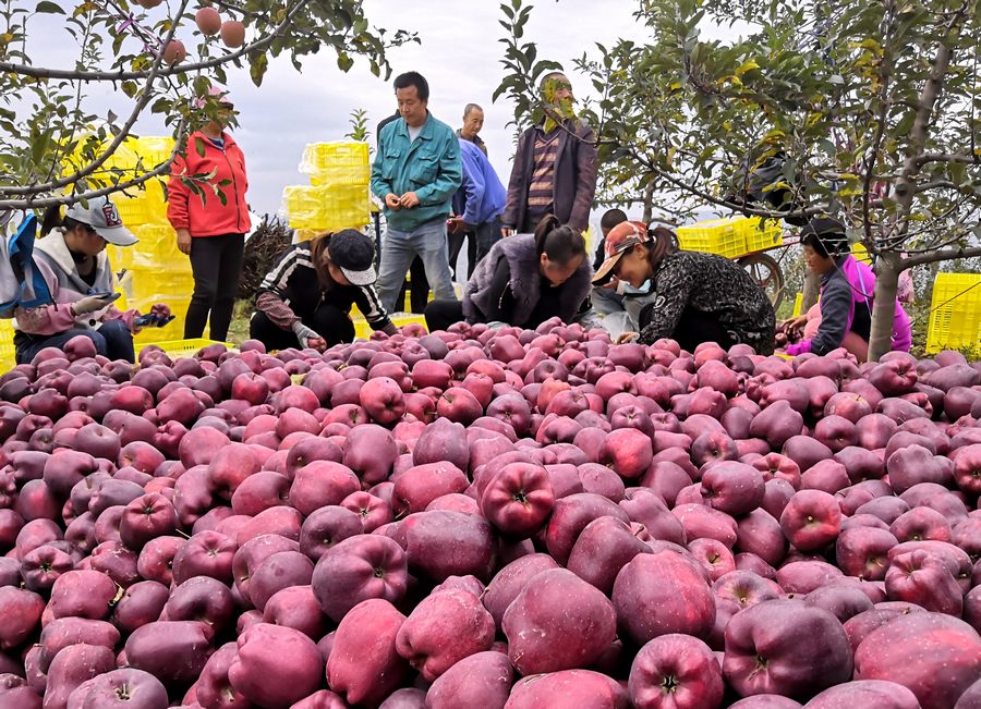 “这村里平均每家每户要成万斤的苹果,像1500米的海拔,交通不便,定然客商会少一点,区扶贫公司和忙鲜供应链工作人员上来,在村里收购苹果,价格能比市场的高一两毛钱,增加了果农种植苹果致富增收的信心,这样可以让果农早日走上依靠发展果品产业走上脱贫致富之路。”苹果收购代办人胡建兵对记者说。