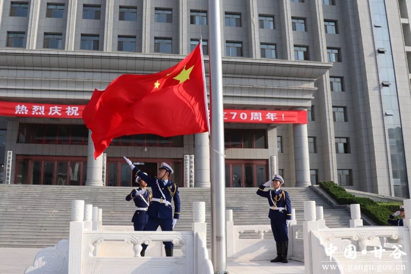 9月30日上午,甘谷县在县委统办楼前举行庄严的升国旗仪式,热烈庆祝中华人民共和国成立70周年。县委书记申君明参加升旗礼并致辞,县委副书记、县长吴健主持仪式。