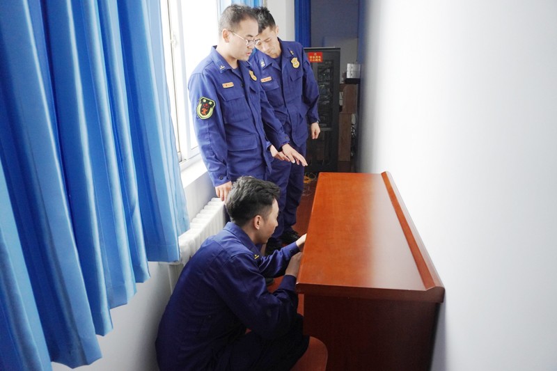 检查过程中,大队长牛翔宇对营区训练设施、油水电器逐一进行检查,确保查找出存在的问题和不足,主要检查营区安全管控,训练安全、车辆登记查验制度是否严格按照要求填写,营区视频监控系统是否完整好用,营区油、水、电、气等重点环节安全防范措施是否严密,营区哨楼、厨房操作间、营房楼顶、单双杠、训练塔和财务室等重点部位是否存在安全隐患。最后,针对排查出的各类问题和不足认真分析原因,并及时对存在的安全隐患进行了整改。
