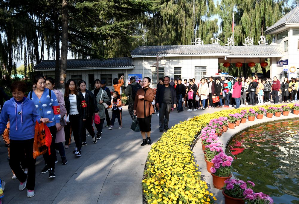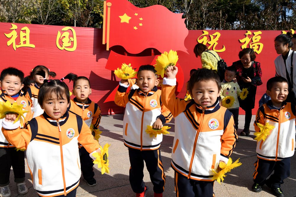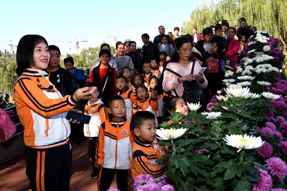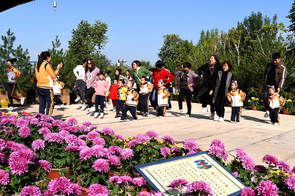 10月16日,麦积区渭北幼儿园的近300名幼儿在马跑泉公园赏菊、观景、唱《我和我的祖国》、拍我和国旗同框照片、玩寓教于乐的亲子游戏。随着“盛世华诞、菊香麦积”主题菊展的成功举办,马跑泉公园成了赏菊观光“打卡地”。