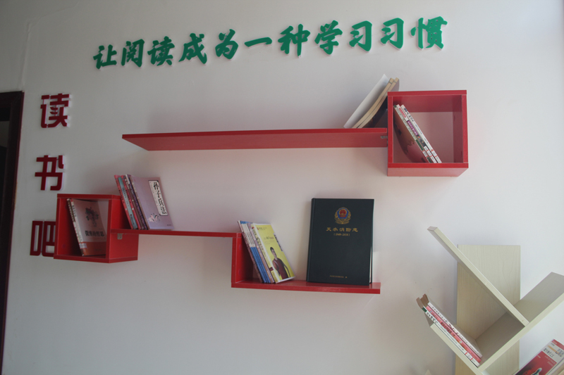 在生活区,大队围绕“不忘初心、牢记使命”主题教育进行了精心设计,为广大指战员打造出环境优美、氛围浓厚的学习角,大家在闲暇之余即可了解先进、学习先进、对标先进,汲取榜样力量,为“不忘初心、牢记使命”主题教育提供了优质的教育素材,广大指战员在日常工作、生活、训练当中都不忘“看一看”“读一读”,形成了学先进、守初心、担使命的浓厚氛围。