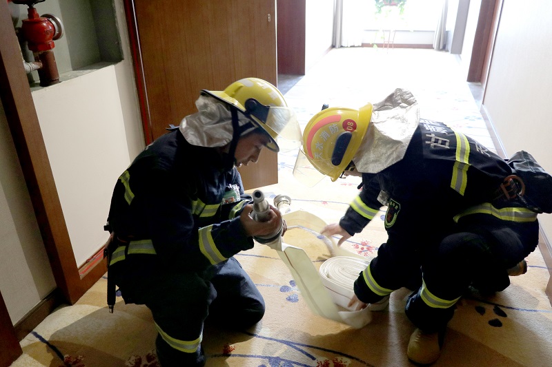 专职队员在酒店负责人的带领下认真熟悉了对各单位内部构造、疏散通道、消火栓分布等进行熟悉掌握,坚持从实战角度出发,主要查看安全通道、疏散标志、内部水源、室内消火栓压力、消防控制室等进行了熟悉。重点对酒店的客房部、餐饮部等进行查看,了解各建筑的防火分区设置、消防设施设置情况,对战时可利用水源情况、进攻路线、疏散路线进行实地熟悉。同时,邀请酒店安保负责人对专职队员详细讲解了酒店内部构造等信息,使专职队员切实熟悉和掌握酒店的基本情况,做到心中有数。