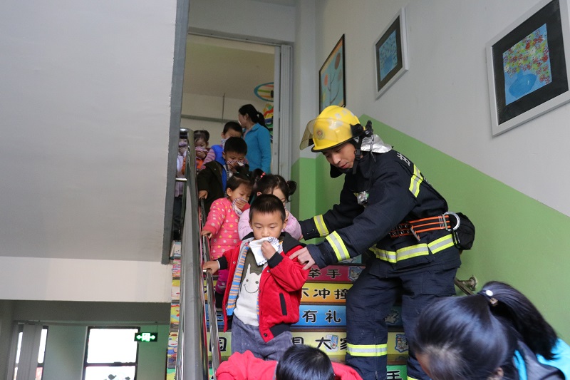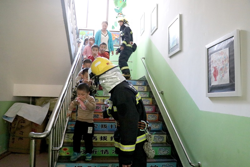 随后,在疏散逃生演练活动中,大队消防宣人员启动模拟逃生方案,让小朋友亲身体验发生火灾后该如何正确逃生。随后,幼儿园内突然响起了刺耳的警报声,小朋友们在消防员和老师的带领下,用湿毛巾捂着鼻子,弯着腰,迅速通过安全通道有序逃生,5分钟后,小朋友们都被及时疏散到学校操场安全地带。