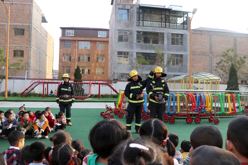 为深入推进学校消防安全宣传教育工作,增强幼儿园师生的防范自救能力及突发事件应急处置能力,结合“119”宣传月活动,近日,秦安消防应邀走进辖区第五幼儿园与,全校500余名师生共学“逃生术”。