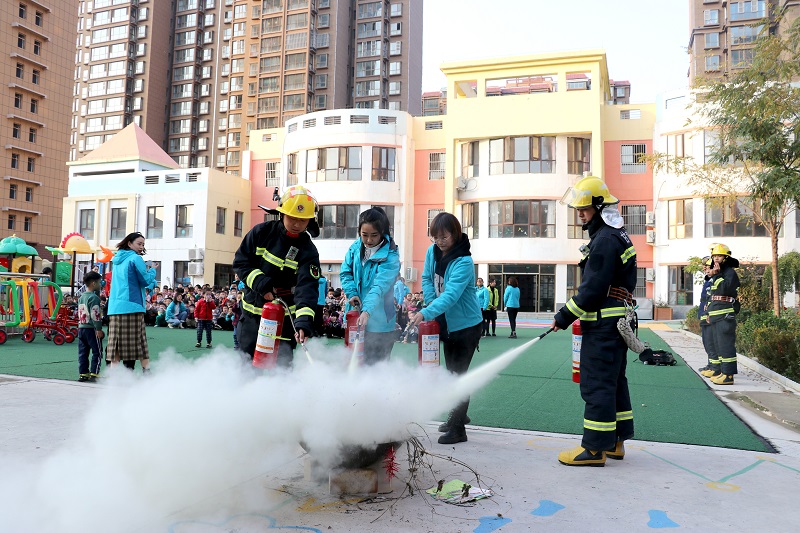 活动中,大队宣传人员根据幼儿园的实际情况,用通俗易懂的语言为全校师生讲解了消防安全常识,以及扑救初期火灾的基本知识、校园内如何预防火灾、遇到紧急情况时应该如何处理、如何逃生等与小朋友们日常学习生活密切相关的消防知识。同时,大队宣传人员现场为师生们讲解了灭火器的种类及正确使用方法,并手把手的指导师生亲身体验灭火器的使用,让全校师生对消防安全有了更深的体验。