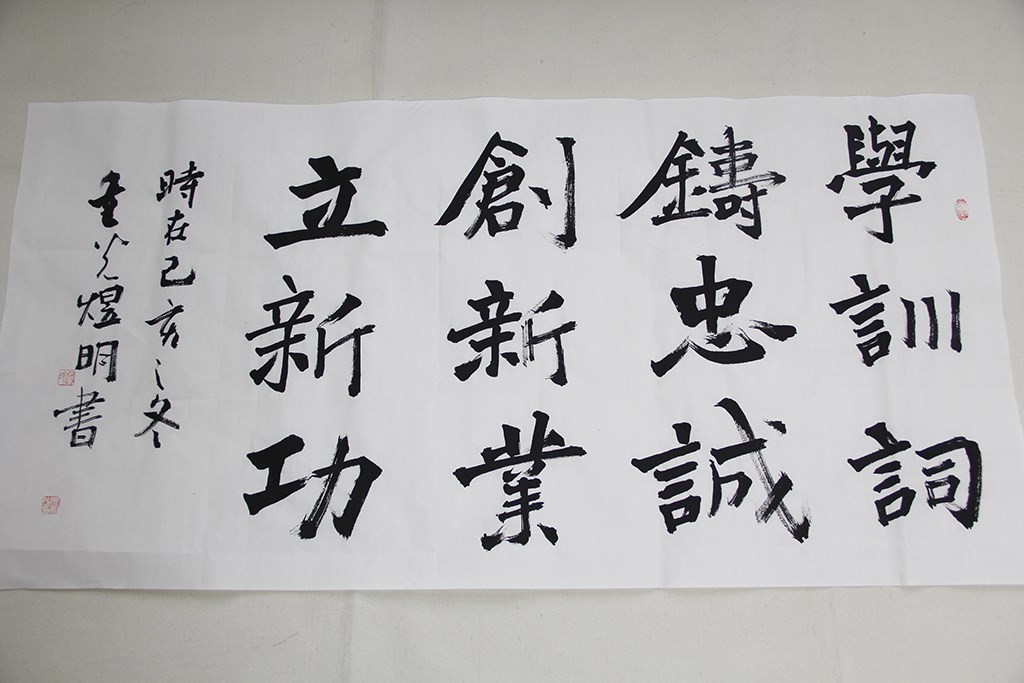 活动期间,7名书画家老师现场展纸研磨,挥毫泼墨,尽抒豪情,惠赐佳作,以笔写心,用饱蘸激情的笔触书写各种书体,“学训词、铸忠诚、创新业、立新功”、“不忘初心、牢记使命”、“对党忠诚、纪律严明、赴汤蹈火、竭诚为民”、“练为战”等一幅幅气势磅礴的的书画作品跃然于宣纸上。作品遒劲有力,字里行间表达了对消防指战员的高度赞赏和美好祝愿,也充分展现了书法家们独到的审美情趣和艺术功力,赢得了在场消防指战员的啧啧称赞。创作间隙,老师们还与指战员们面对面、手把手地讲解了书画创作的基本方法和技能要领,为大家献上了清新高雅、意境深远的文化大餐。此次书画艺术家进红门活动是大队纪念“学习贯彻习近平总书记授旗训词精神一周年”系列活动中的一项重要环节,进一步活跃了指战员文化生活,丰富了文化涵养水平,陶冶了情操,为深化“不忘初心,牢记使命”主题教育注入了强大力量。旨在进一步加强队伍文化建设,大力引导支队指战员进一步统一思想、认清使命、凝聚力量、强化担当,将学习教育成果转化为忠诚履职的强大动力。