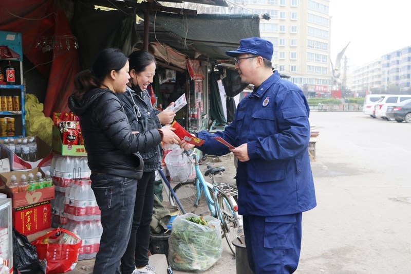 灭火器使用前要先看看压力表……”,不要在楼道内堆放杂物”,“电瓶车可不能在这充电”,“老板,你店里可燃物品很多,要多注意防火啊……”连日以来,数十名身穿“火焰蓝”的消防文员出现在辖区大街小巷,以提醒和发放消防安全知识手册的方式向检查的单位及行人开展消防知识宣传。针对‘九小场所’沿街门面普遍存在的商铺内物品多、摆放乱,且大多使用大功率电器等现象,逐一向沿街店铺发放《“九小场所”消防安全提示》、《消防安全二十条》等消防安全知识资料,并耐心向商户们讲解秋冬季节火灾特点、防火灭火常识、发生火灾如何报警、如何扑救初起火灾、如何组织疏散逃生及灭火器操作方法等消防安全知识,提醒商户要切实加强防火工作,注意用火、用电安全,日常生活及经营中要确保疏散通道的畅通等。