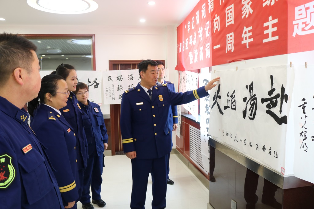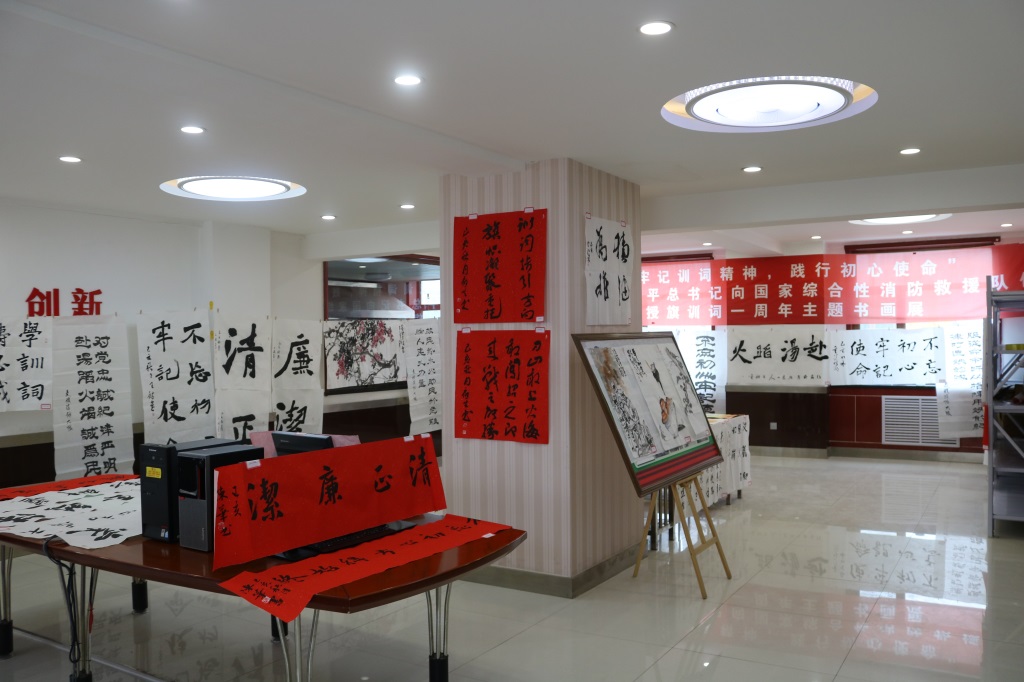 为隆重纪念习近平总书记向国家综合性消防救援队伍授旗训词一周年,进一步深化“不忘初心。牢记使命”主题教育,活跃队伍文化生活,营造学习训词、践行训词的浓厚氛围,11月8日,支队在机关三楼举办了“牢记训词精神,践行初心使命”主题书画展,以笔墨彰显时代英姿,用丹青凝聚践行训词的时代力量。