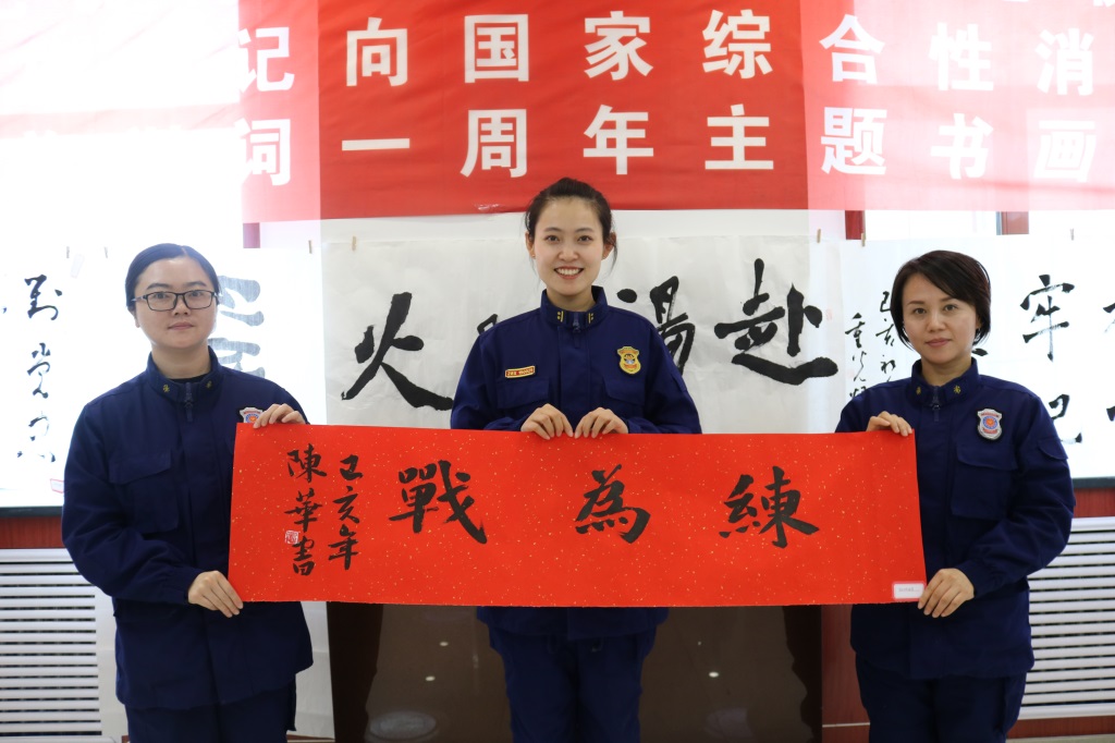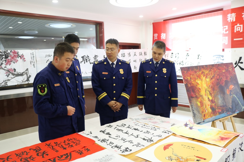 此次书画展以习总书记训词和战斗生活为素材,面向全市消防指战员、合同制消防员、文职人员及其家属子女和地方书画艺术家,共征集作品各80余幅参展。各单位充分结合实际,发掘自身优势,作品既有以反映学贯训词的书法作品,还有以新时代职能使命、灭火战斗为题的绘画作品,集中展示了全市消防指战员对学习贯彻总书记训词的深刻理解,展现了对学习贯彻总书记训词的热情和决心,传递了为新时代消防救援事业奋发向上的正能量,反映出新时代消防救援指战员昂扬的精神面貌。