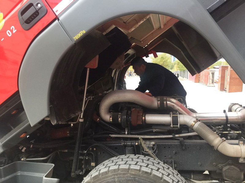 由于消防车辆的长期使用,车辆各零件及不同部位都会产生一定程度的磨损、老化、变形等问题,车辆的整体性能、动力及安全性等方面也会下降。因此,加强对消防车辆的维修与保养具有十分重要的作用;在车辆检查维护过程中,驾驶员首先对车辆的油、水、电、气进行了详细的检查,并及时补充,同时全面检测发动机的部件、性能,更换各种损坏零件,保证车辆性能时刻处于良好状态,并对破损的轮胎进行更换,确保了车辆行驶途中的安全稳定。