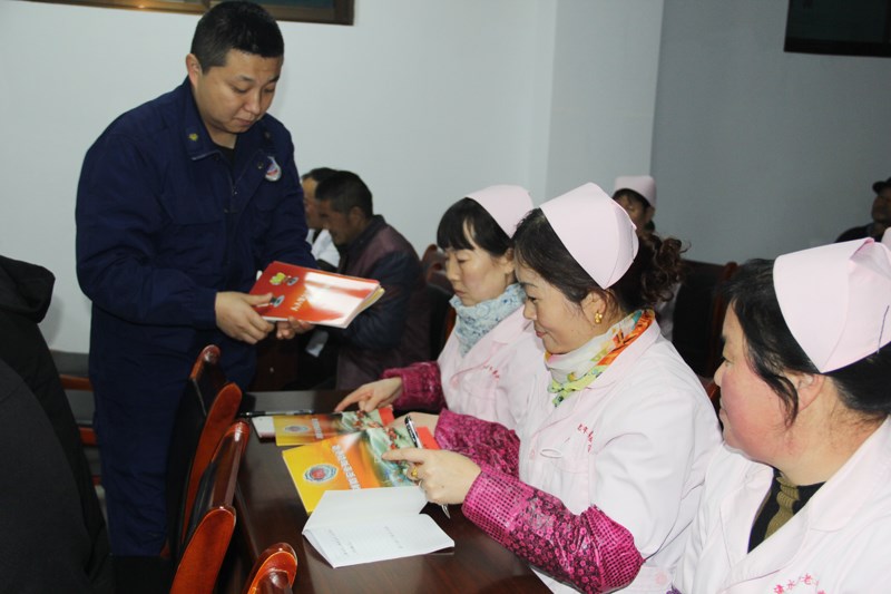 活动中,大队宣传人员一到敬老院,就将宣传资料发放到老人手中,耐心仔细的向老人们讲解了遇到火灾怎么办、如何火场逃生自救以及日常生活用电、用气注意事项等常用的消防知识,并反复叮嘱老人们一定要注意消防安全,不要在房间内使用明火、吸烟,从自身上减少火灾事故的发生。随后,大队监督员指导院内工作人员正确的进行疏散和逃生,亲自拿起灭火器,进行了一次真实的“火灾扑救”,通过实践操作的方式,使工作人员切实掌握使用干粉灭火器扑救初期火灾的方法和技巧,提高了大家的基本消防技能。