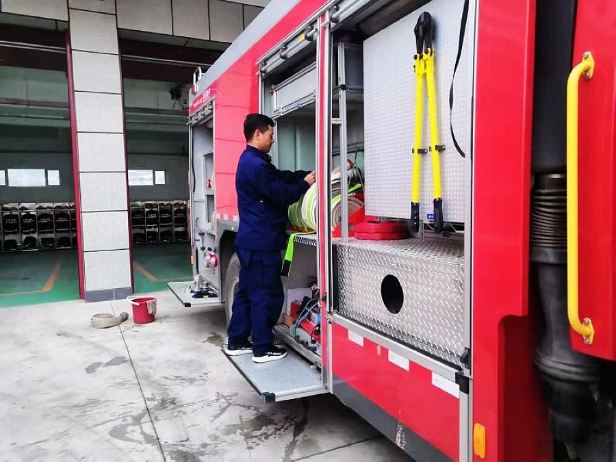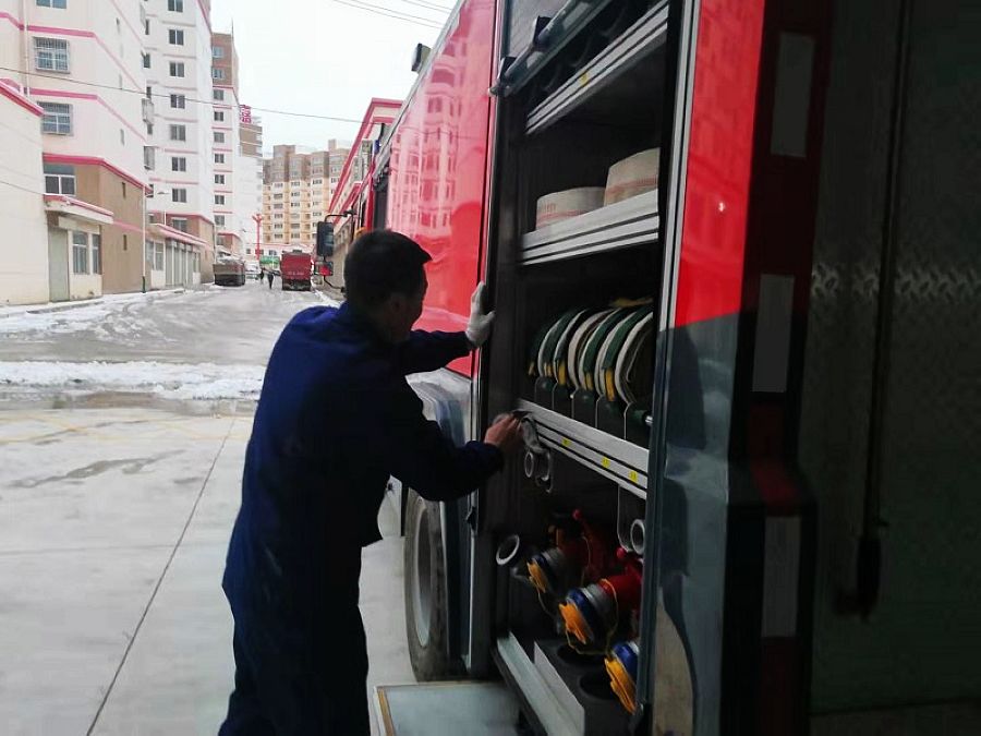 车场日活动中,大队队员严格按照车辆保养和器材装备维护的要求,对大队所有执勤车辆和随车器材进行全面细致的检查维护;对每辆车的油、水、电、气是否充足,各个指示灯是否正常,刹车是否正常、车辆防滑防冻措施是否到位;对个人防护装备主要检查有没有损坏、丢失、锈蚀等情况,确保个人防护装备的完整好用。对车辆器材存在的问题进行仔细记录并及时上报进行维修解决,确保车辆及装备器材的完整好用。