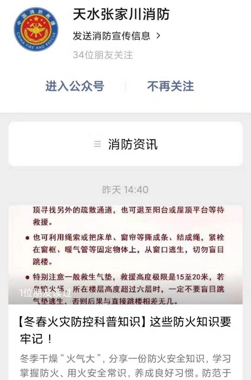 宣传报道及时,加强消防宣传效果力。大队利用官方微信信息传播速度快的特点,每天发布预防火灾常识、抢险救援报道、社会宣传活动等,网民可以随时随地通过微信,了解学习消防知识。