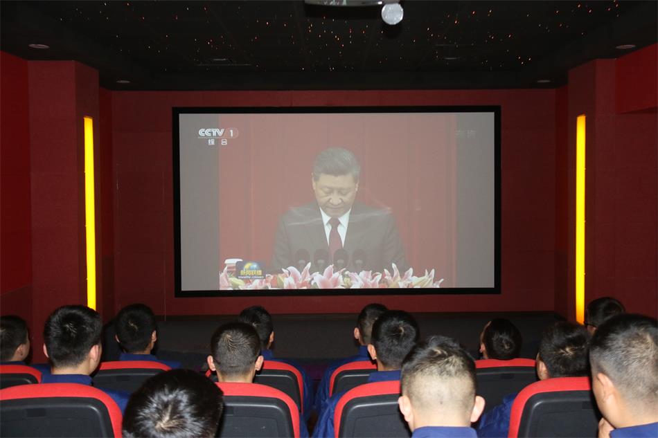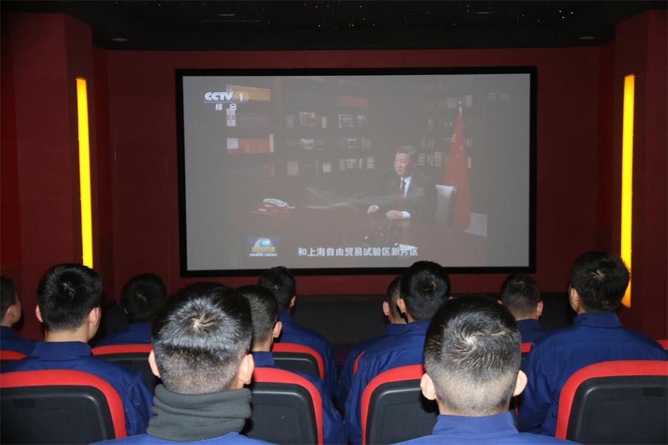 2019年12月31日晚,七里墩消防救援站全体指战员早早等候在红门影院收看习近平主席新年贺词现场直播。19:00直播准时开始,大家全神贯注,认真倾听,现场不时爆发出阵阵掌声。结束后,大家围坐在一起,认真讨论,贺词在指战员中引起强烈反响。有的指战员觉得听得还不过瘾,专门用手机反复聆听,细细品味。