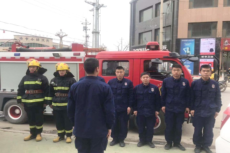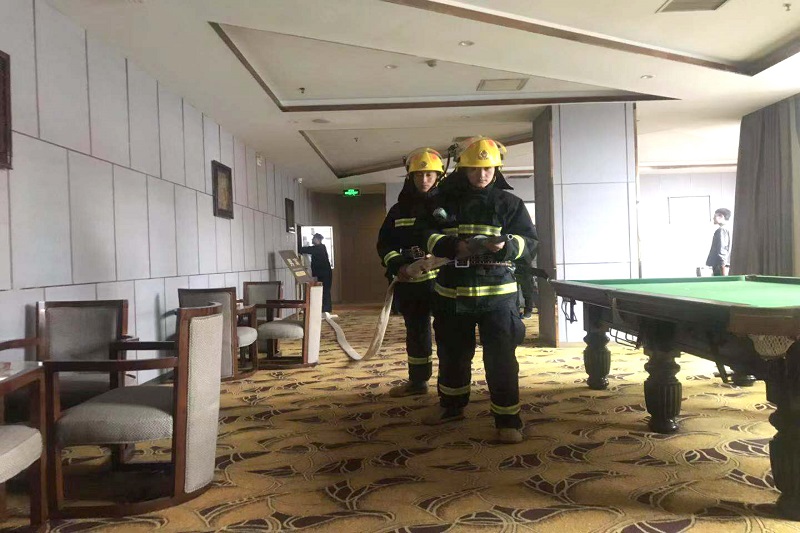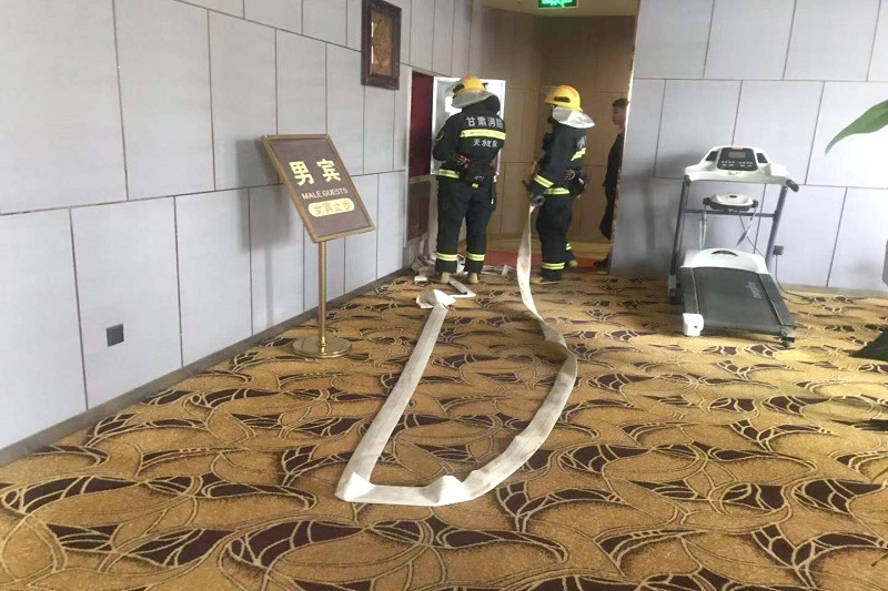 随后,此次演练假设洗浴中心3楼休息区发生火灾,负责人拨打报警电话。和顺消防接到报警后,迅速出动两辆消防车,8名消防指战员赶往事发现场,到达现场后,指挥员立即派出人员对火情进行侦查同时部署作战计划:战斗一组佩戴好个人防护装备后利用室内消火栓进入火场搜救和内攻,二组在门口设置水枪阵地对着火楼层射水,防止火势向上、下两边蔓延,演练过程中,各组成员分工明确,配合默契,演练从火情侦察、搜救和疏散被困人员到灭火结束,每个环节都要求官兵从实战出发,整个演练有条不紊地进行,圆满完成了灭火救援演练任务。演练结束后,还给单位部分员工讲解了灭火器的用途和使用方法,切实提高了单位员工对初期火灾的处置能力。