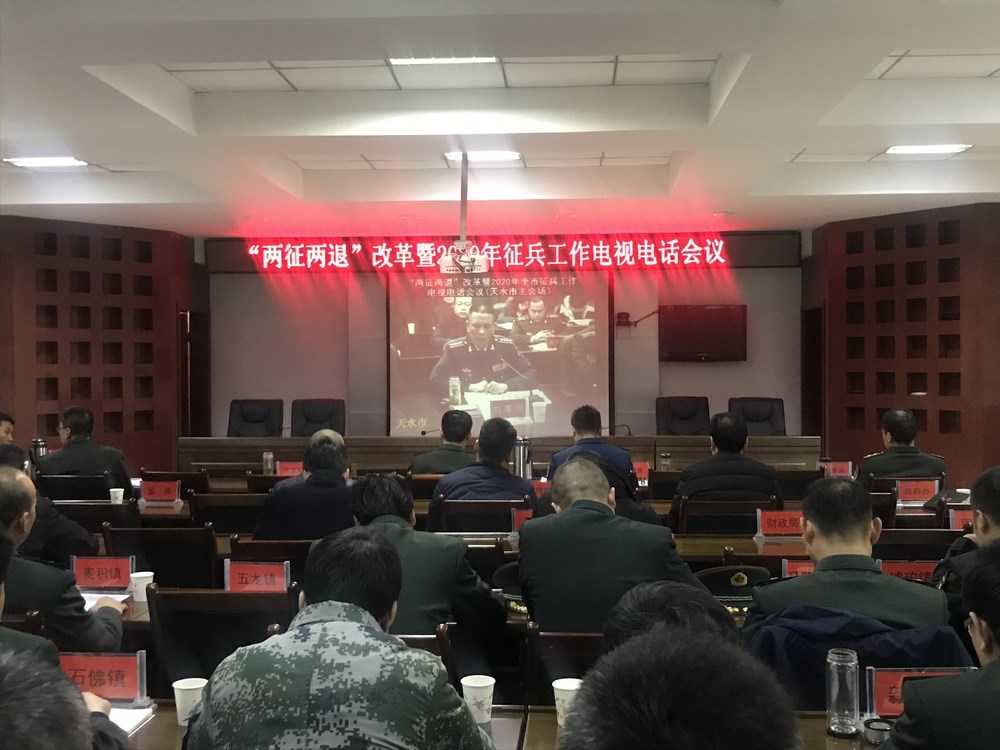 全体参会人员共同收听收看了全国、省、市“两征两退”改革暨2020年征兵工作电视电话会议,认真听取国务院、中央军委关于“自2020年起,将义务兵征集由一年一次征兵一次退役,调整为一年两次征兵两次退役”的重要决策部署。视频会议结束后,紧接着召开麦积区2020年征兵工作会议。