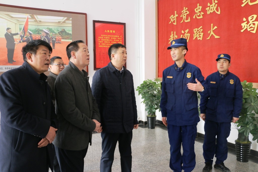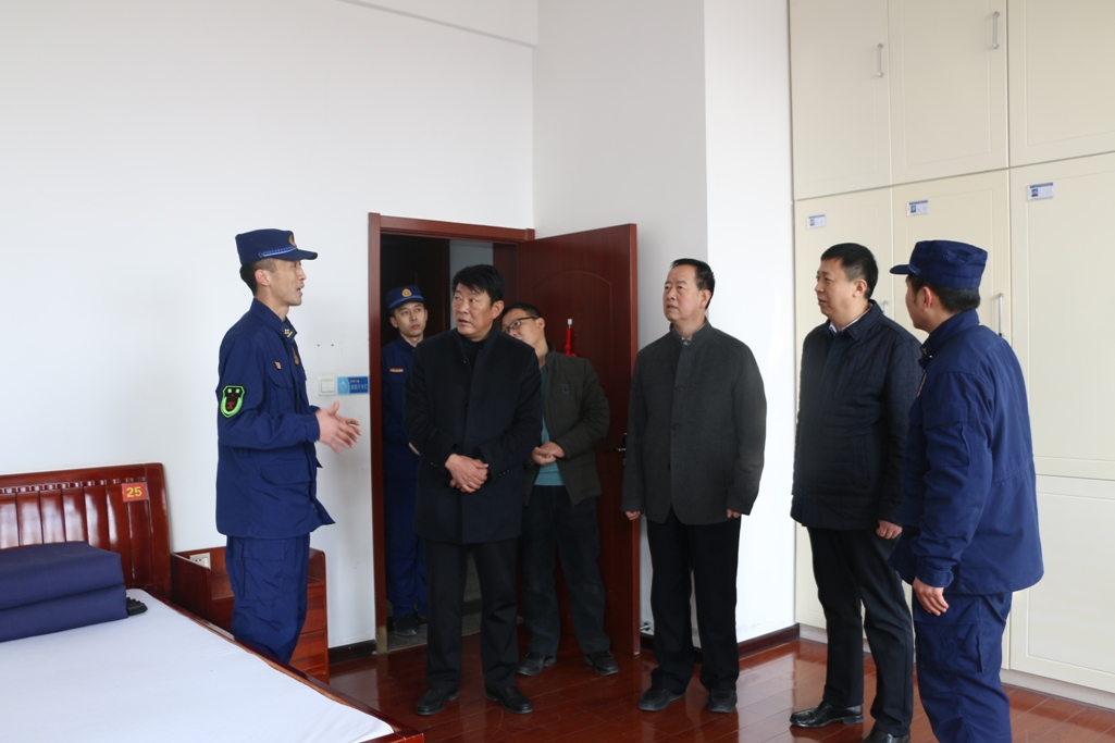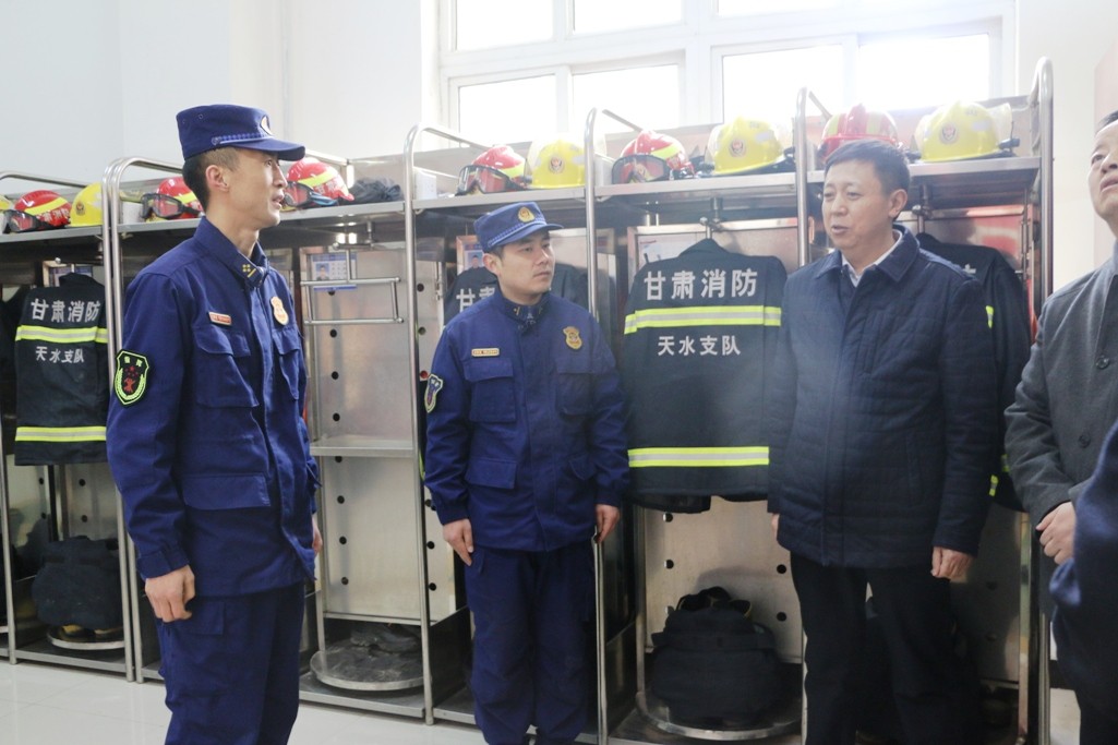 慰问现场,在消防指战员整齐的队列前,甘谷县委常委、政法委书记马福胜代表县“四大班子”领导向长期战斗在一线的消防指战员送去了春节的祝福。他指出长期以来,甘谷消防全体指战员始终牢记宗旨使命,恪尽职守、甘于奉献,在火灾防控和应急救援工作中发挥了不可替代的作用,为维护社会安全稳定、保护全县人民群众生命财产安全做出了突出贡献。并强调,春节将至,消防大队全体指战员要继续发扬特别能吃苦、特别能战斗、特别能奉献的优良作风,认认真真做好春节期间消防安保工作,全力维护甘谷消防安全形势稳定,确保人民群众度过一个平安、祥和的春节。慰问期间,县“四大班子”领导在大队主官和中队干部的陪同下,查看了大队营区建设、消防车库和车辆装备器材等情况。