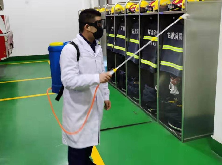 采购N95口罩,配发护目镜,加强病毒消杀。为全面彻底做好消防站宿舍、食堂、车库、泵房等库室所消毒工作,值班人员第一时间行动,迅速安排部署落实,克服疫情防控期间天水市防疫物质短缺现状,从天水各地采购84消毒液、测温仪、N95口罩等病毒消杀物质,同时为指战员配发护目镜,每天按时对营区各处各库室进行消毒杀菌,特别针对充气泵房充气泵进行消毒,防止有害病菌进入,对战斗服进行消毒杀菌。