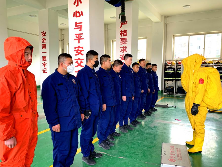 站点组织对全体指战员进行防化服、洗消器材进行熟悉,对防化洗消器材的适用范围、注意事项进行了讲解,现场演示防化洗消器材的使用方法。此次实战化训练采用了多方式相结合的讲解方法,激发了全体指战员的学习兴趣和积极性,同时提高了全体指战员的基础防化洗消知识和应急处置能力,为实现队伍在做好疫情防控工作打下坚实基础。