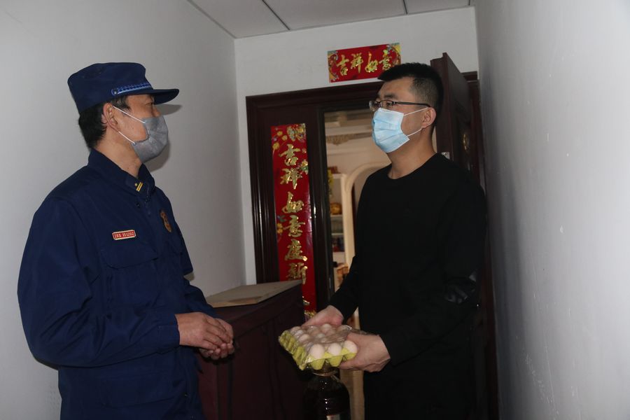 带着一些简易防护口罩酒精医用防护品及鸡蛋食用油和蔬菜来到指战员及自我隔离队员家中,与其家属拉家常,并讲述疫情简易防护知识,尽量做到疫情期间减少出门,出门戴口罩,避免接触人员密集场所,做好日常消毒工作。