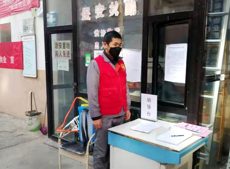 当天下午2:30分,郭亭佐按要求准时到岗,俯下身子马上进入工作状态。他配合物业公司员工,哪个环节需要就往对应的哪个岗位走,时而帮助物业更换橱窗宣传资料,时而配合员工给小区各个角落消毒。一闲下来就在门卫处执勤,对出入人员一一询问排查,并积极宣传防控知识,提醒叔叔阿姨们尽量不出门,出门一定戴口罩。他热情暖心的服务,很快得到了北山路社区和物业公司的认可,赢得了小区的交口称赞。