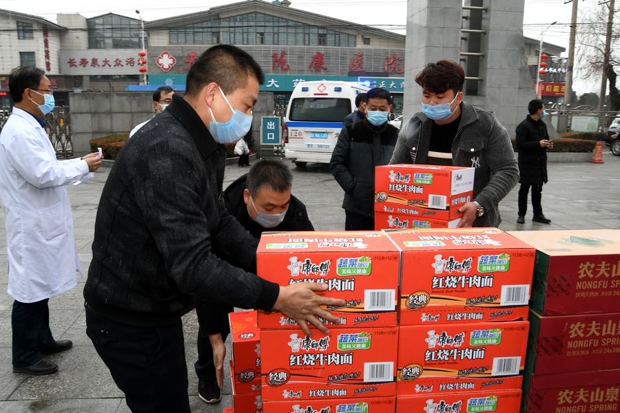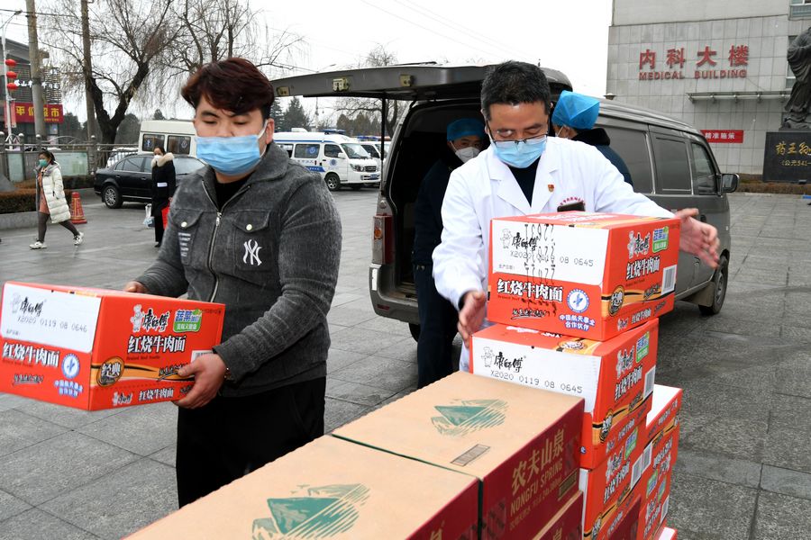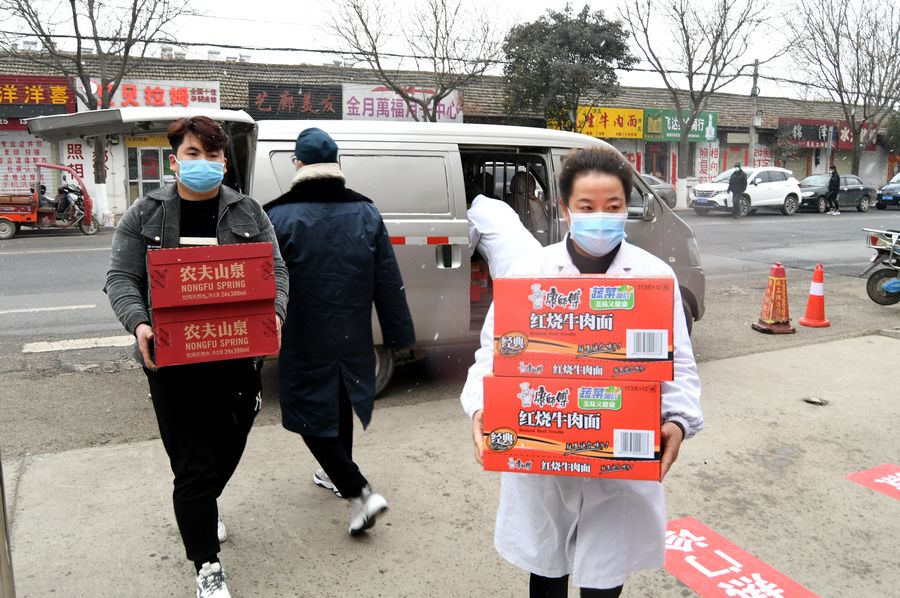 中国甘肃在线天水讯(窦耀辉报道)面对汹涌而来的疫情,2月5日,共青团麦积区委携手天水老家八大碗民俗餐饮店、金水岸酒店、湘潭小厨等爱心企业,为奋战在抗“疫”一线的天水市中西医结合医院、天水市第四人民医院的白衣天使送去了100箱方便面、100件矿泉水,用实际行动诠释了爱心企业心系医护人员,助力疫情防控,传递人间真情,为坚决打赢疫情防控阻击战贡献青春力量。