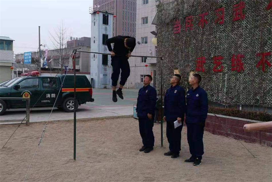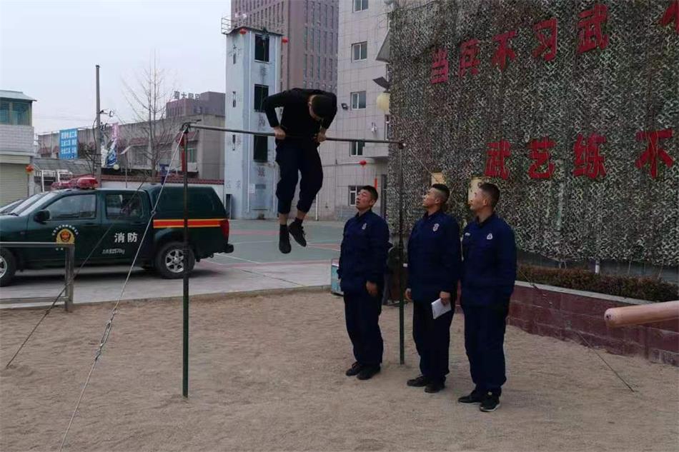 本次考核,以岗位大练兵训练内容为依据,以强有力的体能基础为切入点,兼顾技能项目,为下一步训练工作制定具有针对性的计划,进一步增强队伍执勤作战能力。在考核过程中,队员们克服了寒冷天气带来的不利影响,个个精神饱满、士气高昂,每名队员都彰显出高涨的考核热情。单杠卷身上成绩第一名梁海鹏30个,第二名张鹏耀27个,第三名代立24个,第四名中队长马亮15个,第五名王金红12个,考核结束后救援站干部进行讲评,并要求队员们要以此次考核为标准,查漏补缺,做到胜不骄、败不馁,以更加饱满的热情和昂扬的斗志,全身心地投入到训练中去。